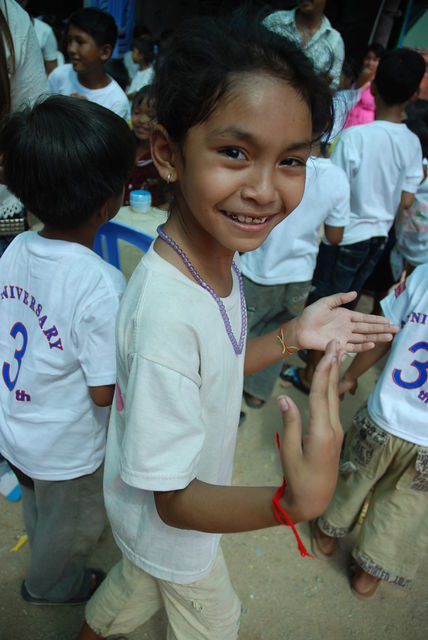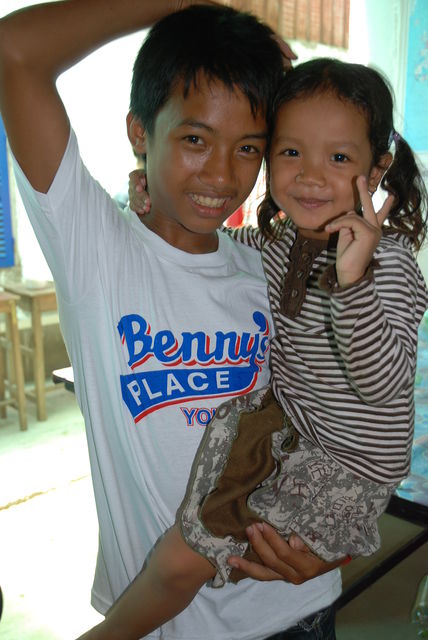 センターの場所が これまた、前回に続き、ぱぴこさんの力作で。 今日は、センターの時間割を。 AM 6:00-7:00 日本語 (授業前 ラジオ体操) 8:00-10:00 クメール語・英語 (2クラス) 10:00-11:00 コンピューター (3人ずつ) PM 2:00-4:00 クメール語・英語 (2クラス) (授業後 ラジオ体操) 4:00-5:00 コンピューター (3人ずつ) 5:30-6:30 英語・日本語 (3クラス) 6:30-7:30 英語・日本語 (2クラス) 朝の8-10クラスと昼の2-4クラスは 1ヶ月ごとに、 午前と午後が交換になります。 内容はほとんど同じです。 (公立の学校が、 同じように、授業が午前コースと午後コースの 1ヶ月交換になる関係です) 公立の学校で勉強しないで、 朝も昼も、 センターで勉強をしている子もいます。